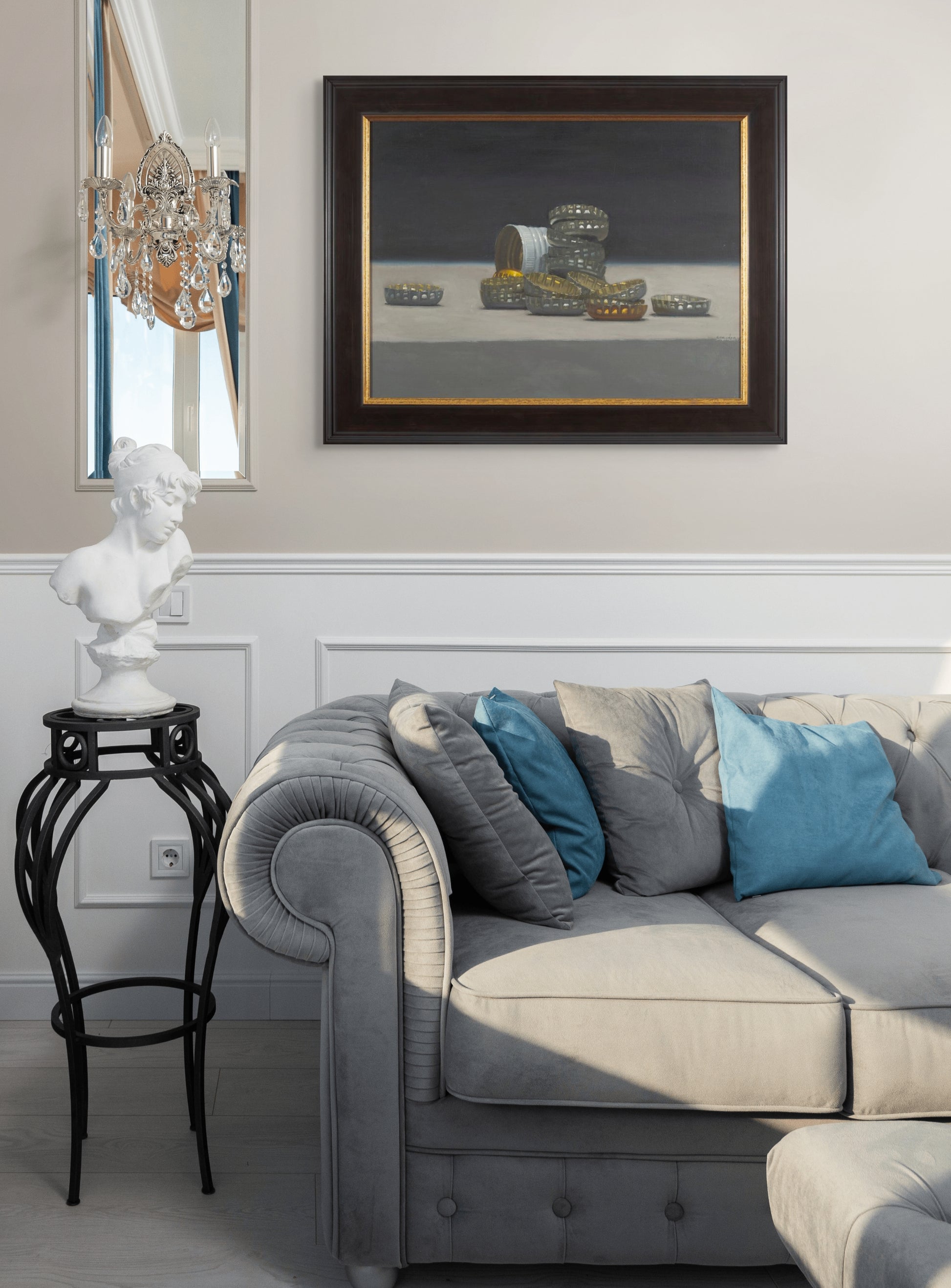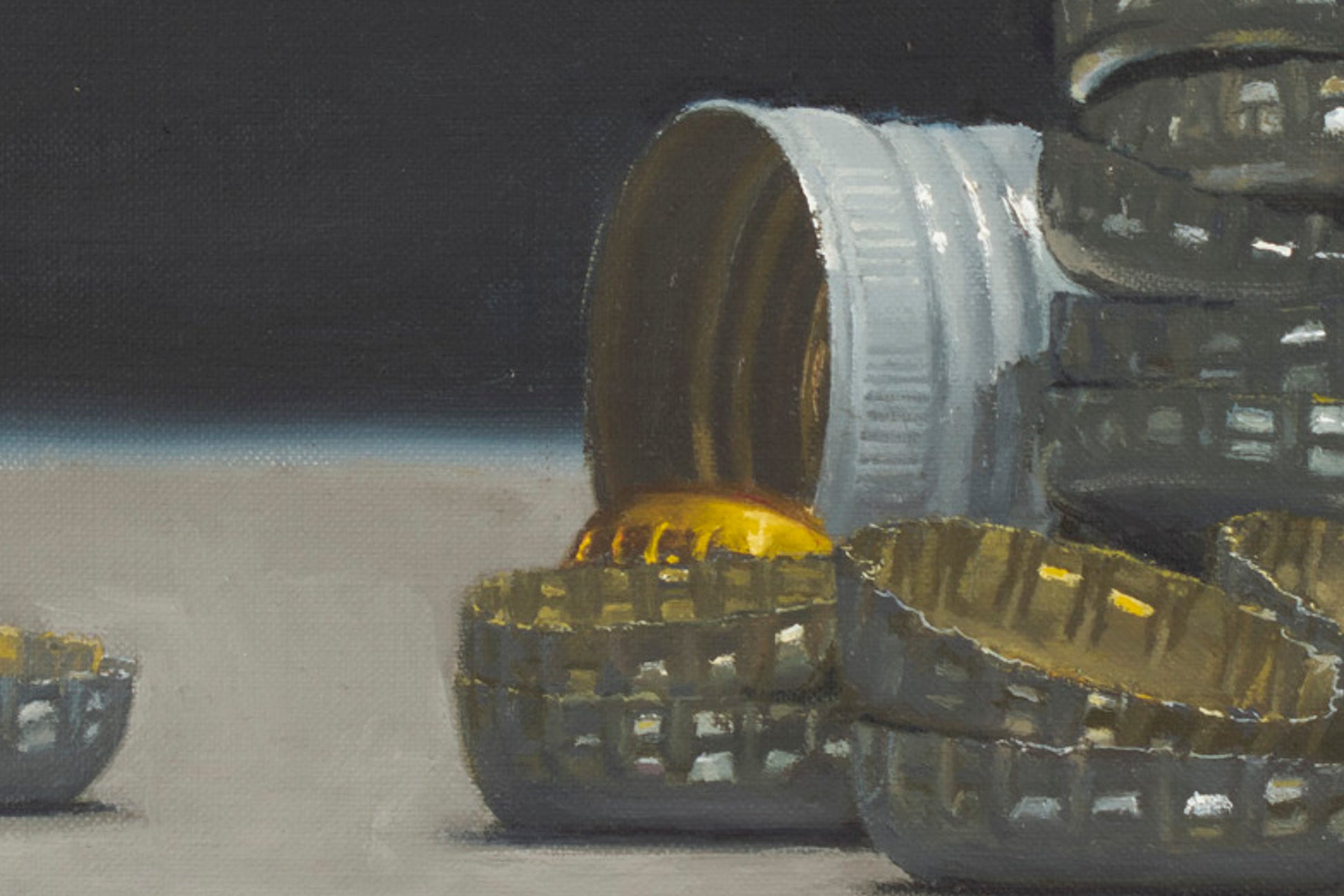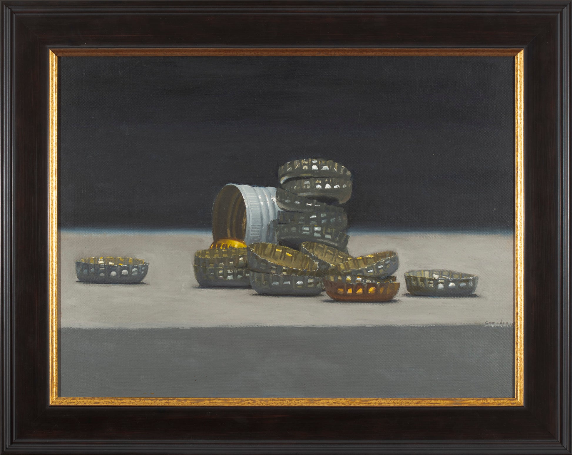 Bitcoins, 2022, oil on linen, 60cm x 74cm framed.