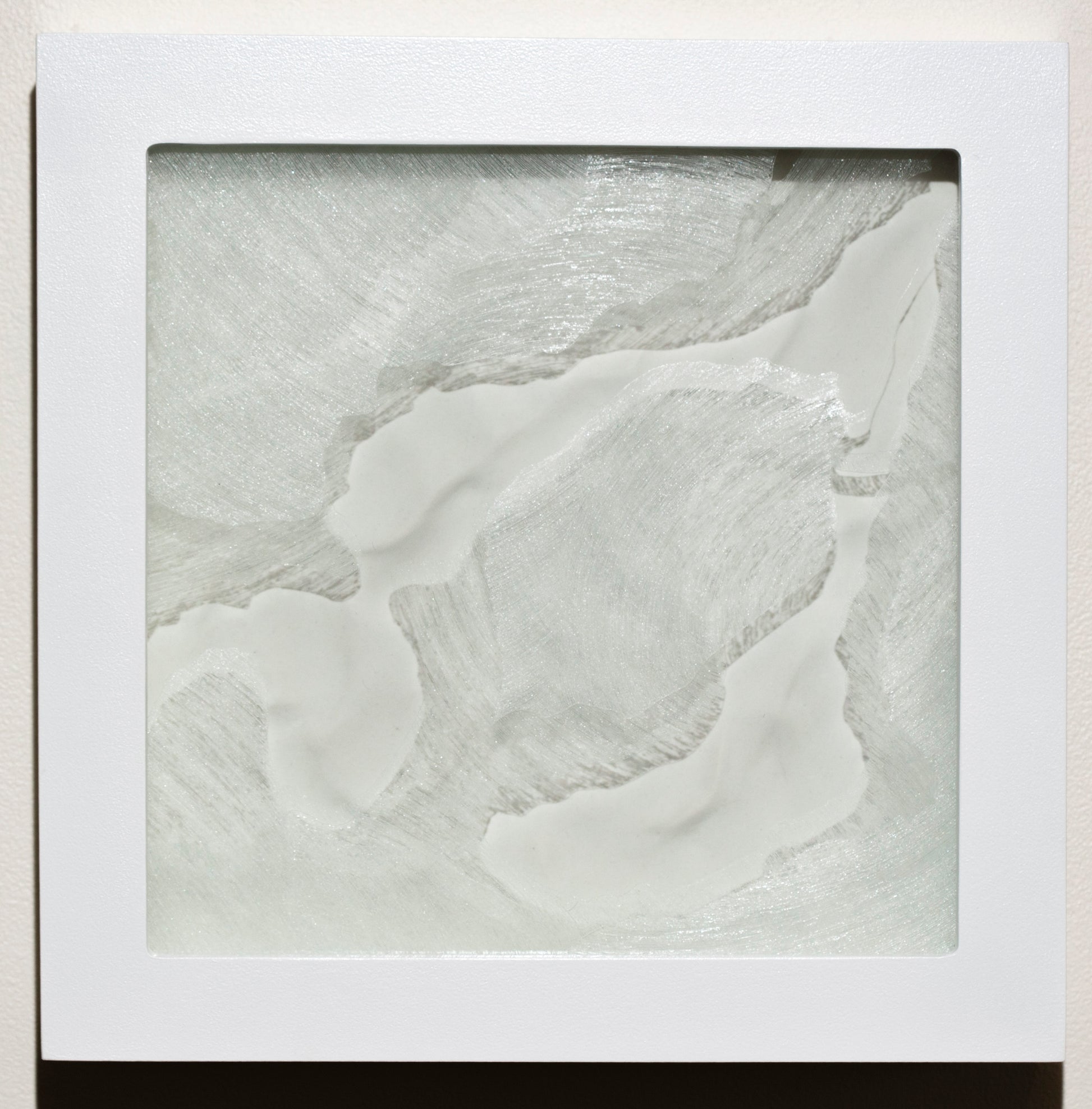 Liminal Lines No.2, Amy Schleif & Jo Victoria, hand engraved glass, porcelain tile & custom frame, 30.5cm x 30.5cm x 5cm, 2025