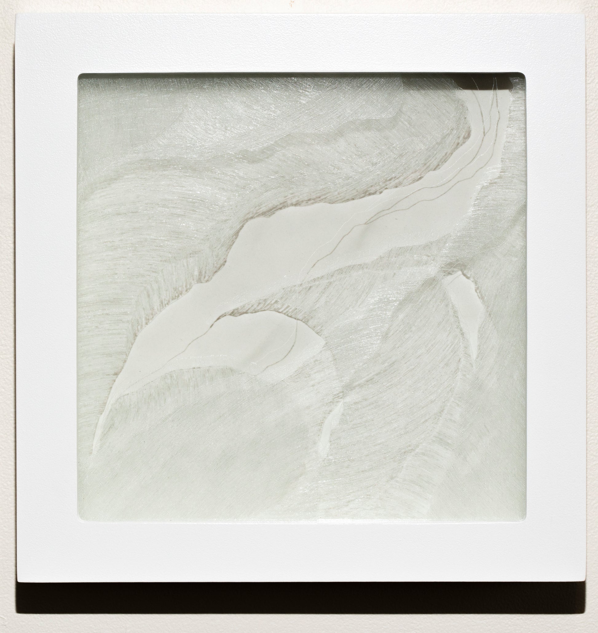 Liminal Lines No.3, Amy Schleif & Jo Victoria, hand engraved glass, porcelain tile & custom frame, 30.5cm x 30.5cm x 5cm, 2025