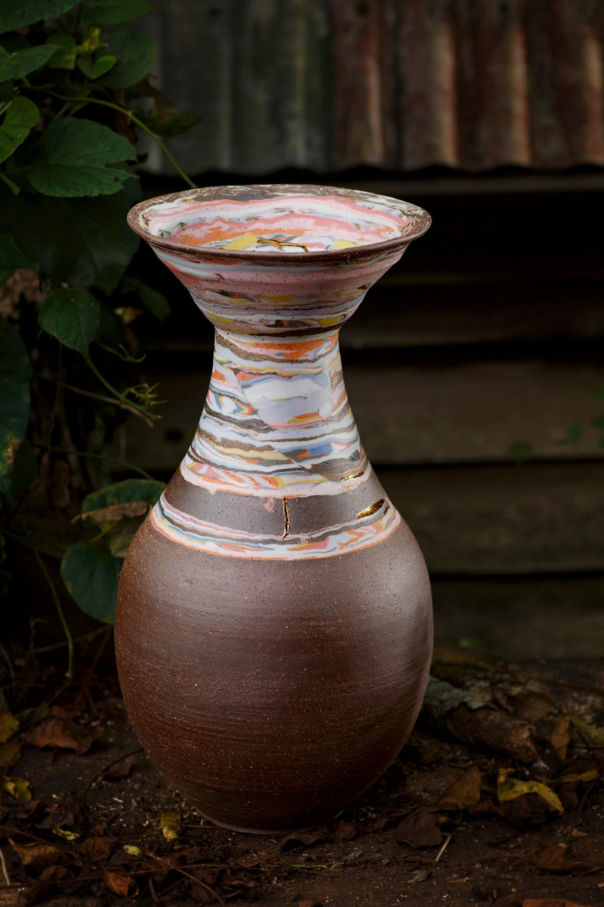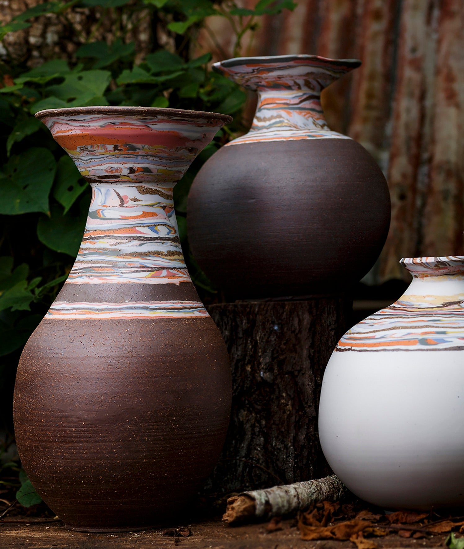I often experience recurring dreams where I can take semiconscious control of the events as they unfold. In this particular dream, centred in a lush backyard forest, I anticipated large pots emerging from the volcanic clay underneath. I felt the porcelain pull between my fingers, visualised the saturated hues and I carried the weight of their big bellies in my arms.