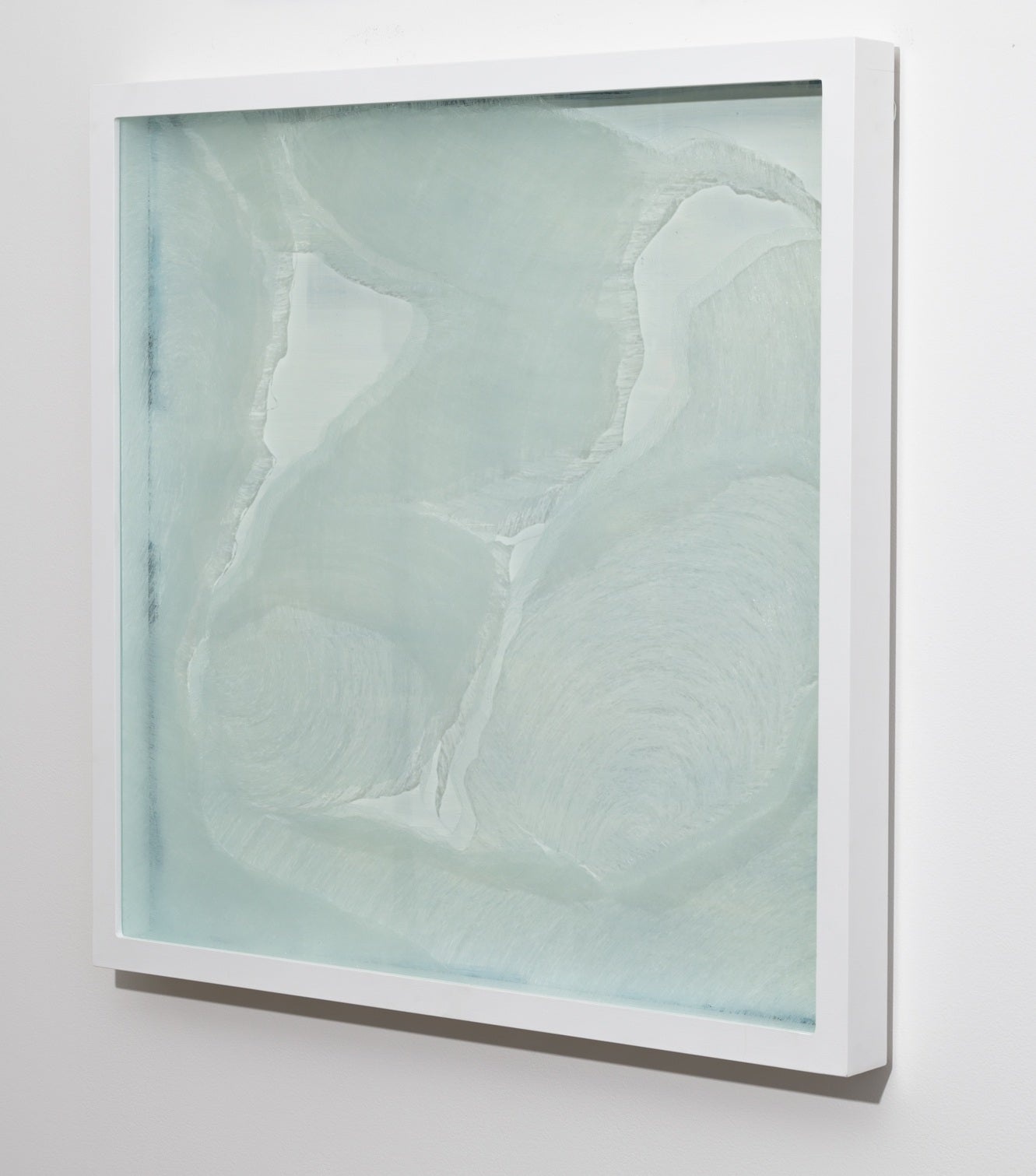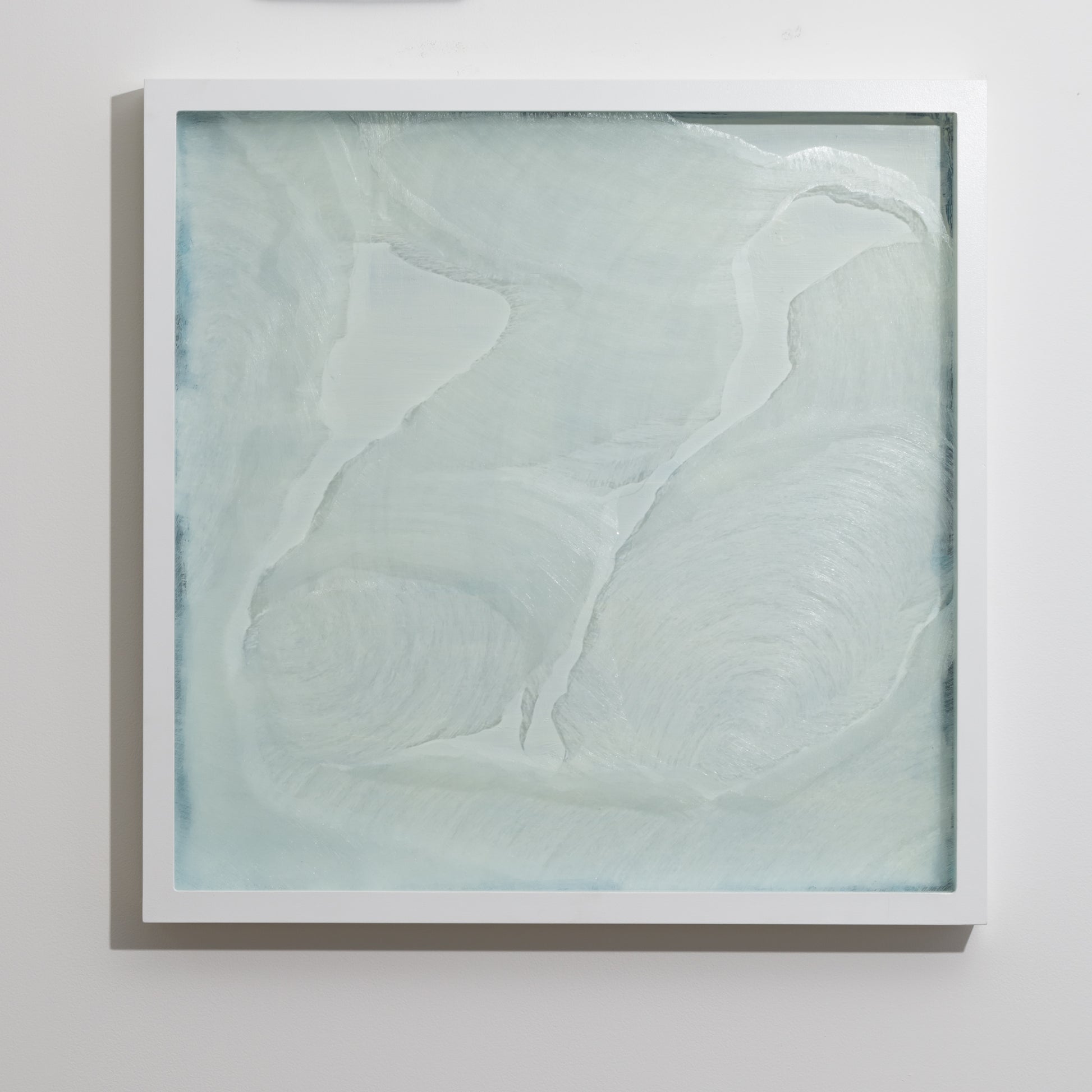 Seeing No. 59, hand engraved glass, oil paint (white on blue) & custom frame, 64.5cm x 64.5cm x 4.8cm, 2025