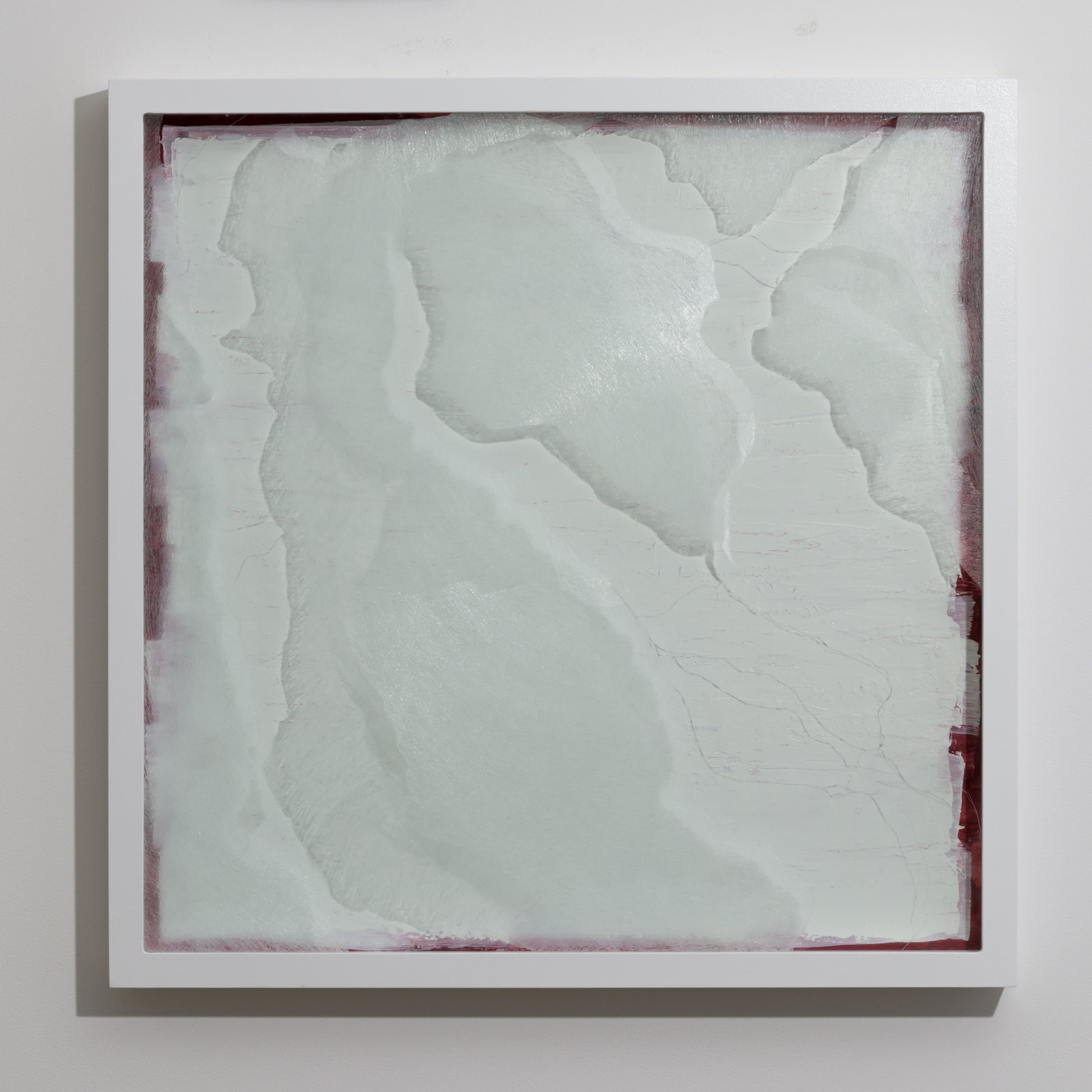 Seeing No. 61, hand engraved glass, oil paint (white on red) & custom frame, 64.5cm x 64.5cm x 4.8cm, 2025