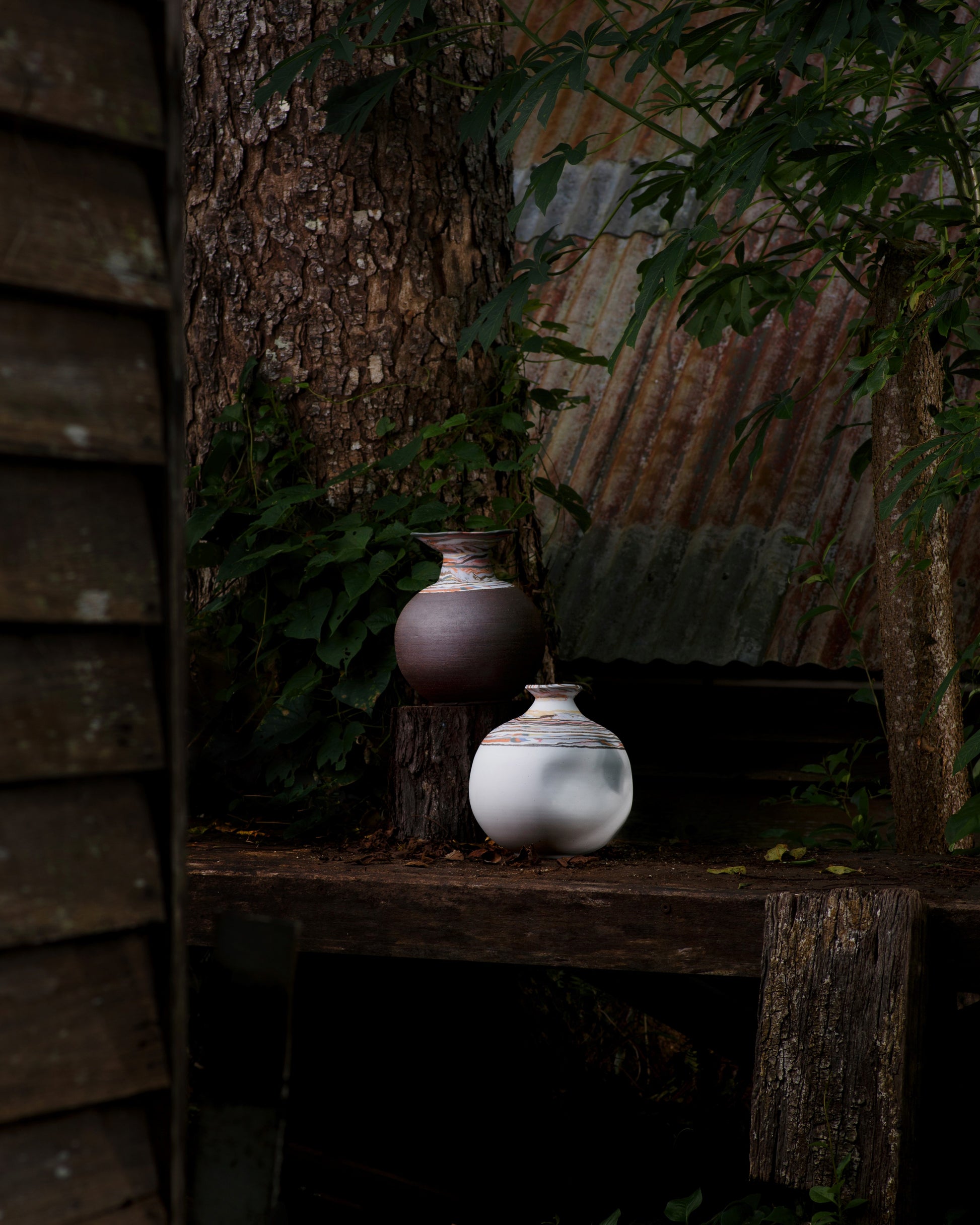 I often experience recurring dreams where I can take semiconscious control of the events as they unfold. In this particular dream, centred in a lush backyard forest, I anticipated large pots emerging from the volcanic clay underneath. I felt the porcelain pull between my fingers, visualised the saturated hues and I carried the weight of their big bellies in my arms.