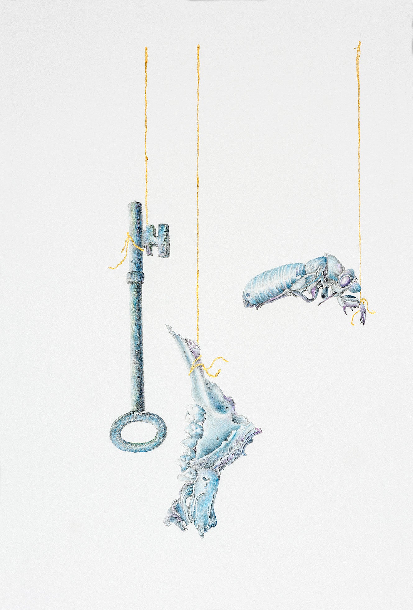 Thus I sat engaged in guessing, watercolour and graphite, 17 x 10 cm.