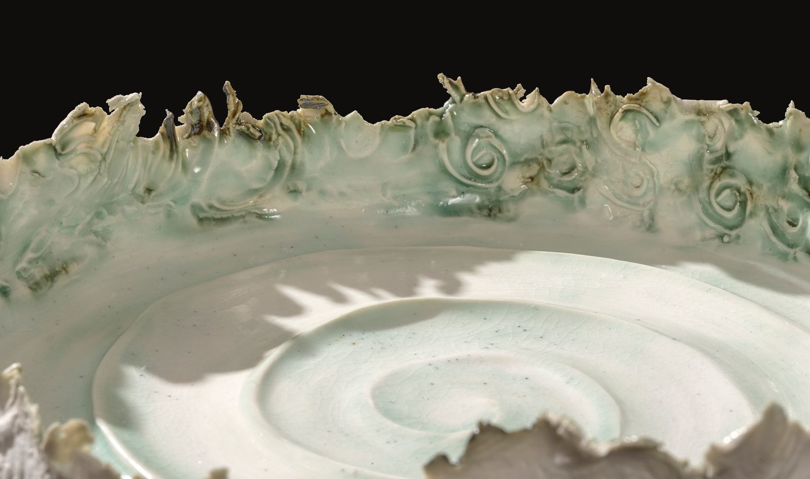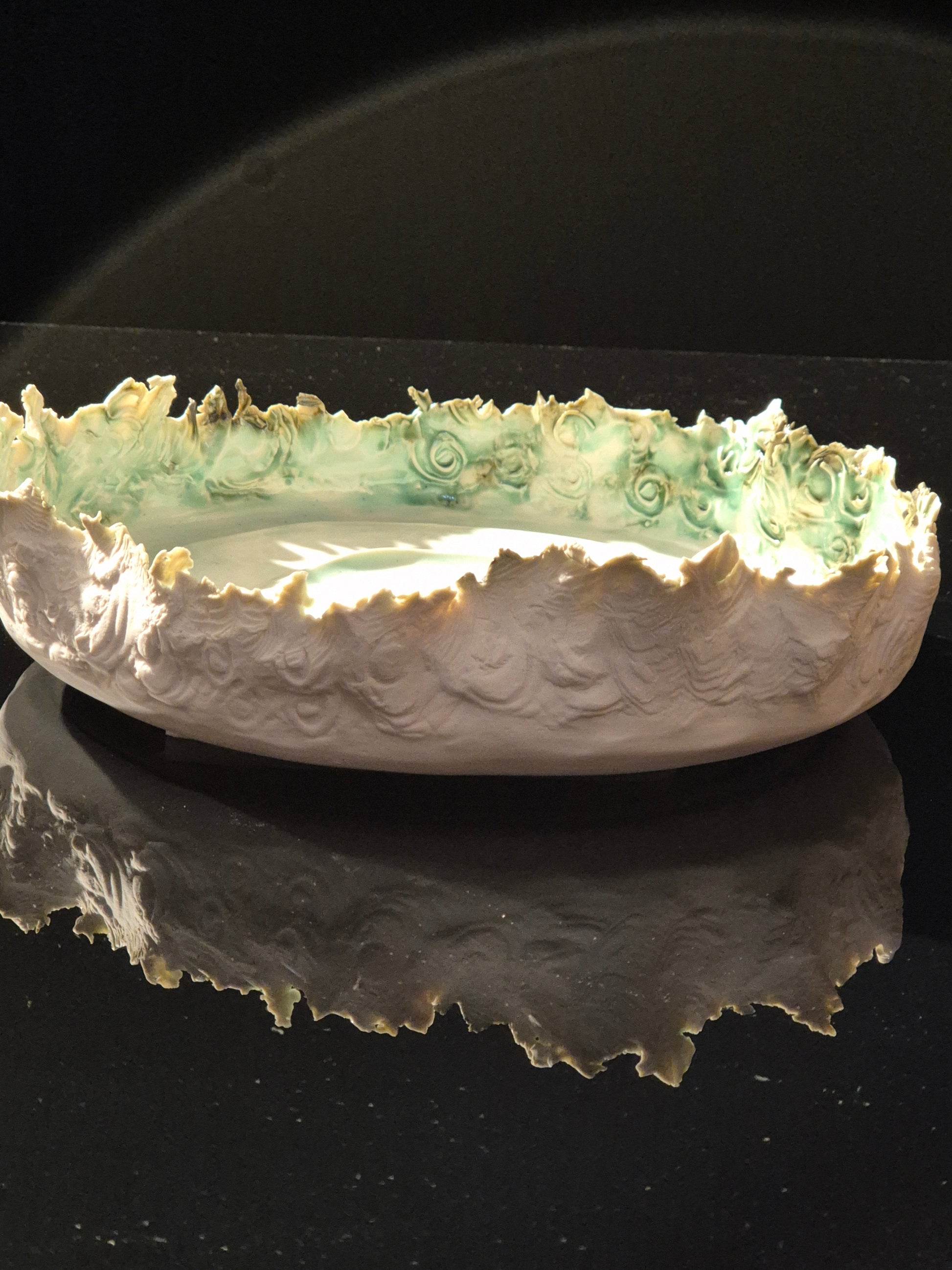 Torrent #1, porcelain, copper stain, clear glaze, 7cm x 28cm x 27cm, 2025
